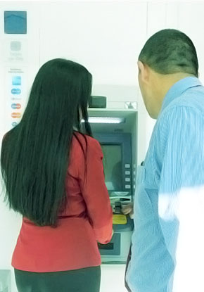 Cubra con su mano o cualquier otro objeto las teclas cuando digite su clave, párese lo más cerca del cajero, esto impedirá que ladrones visualicen la clave.